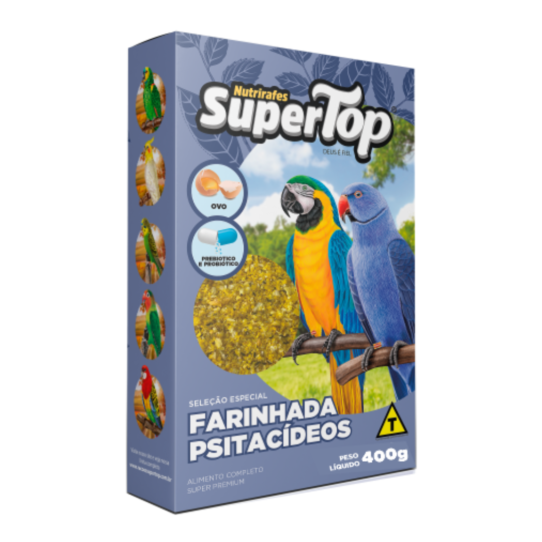 Seleção Especial Farinhada Psitacídeos é um alimento completo, feito com nutrientes de alta qualidade,
