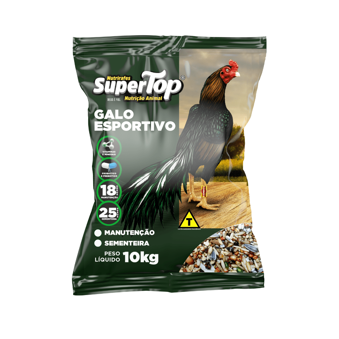 Galo Índio Gigante, Faisão, Pavão, Marreco Mandarim e Pombos. Sua formulação conta com uma combinação de mais de 25 ingredientes entre sementes ricas em fibras e energia como a aveia, a linhaça, o arroz laminado e o amendoim além de extrusados nutritivos e saborosos. Enriquecido com o nosso Aminopet R ®, Galo Esportivo Sementeira possui ainda um mix de aminoácidos e proteína texturizada de soja tornando-o assim um alimento