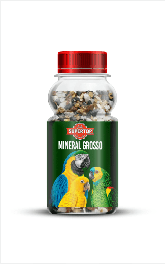 Composição: Mineral para pássaros com aromatizante e antifúngico natural (ácido fumárico, dióxido de silício, aluminisilicato, ácido ascórbico, ácido cítrico, ácido lático).